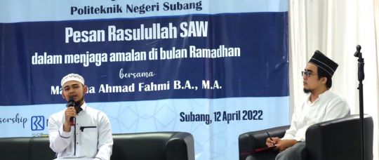 Kegiatan yang bertempat di Aula Kampus 1 POLSUB ini mengangkat tema “Pesan Rasulullah SAW dalam menjaga amalan di Bulan Ramadhan” yang disampaikan oleh Maulana Ahmad Fahmi B.A., M.A. Lelaki asli Subang ini menyampaikan beberapa amalan Rasulullah dan para Sahabat agar selalu bersemangat beribadah pada saat bulan Ramadhan .” Pertama, senantiasa mengutamakan Ibadah dibandingkan pekerjaan, kemudian menanamkan kecintaan terhadap Allah SWT, beristiqomah melakukan kebaikan, serta selalu berdoa,” ujar bapak alumni Jamia Binnoria International Pakistan trrsebut.