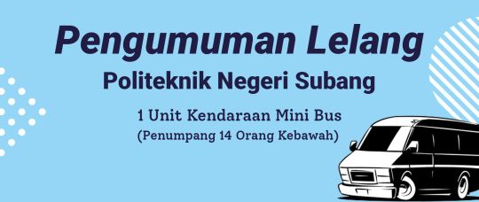 Politeknik Negeri Subang akan melakukan Lelang Penghapusan Barang Milik Negara dengan perantara Kantor Pelayanan Kekayaan Negara dan Lelang Purwakarta berupa 1 (satu) Unit Kendaraan berupa Mini Bus (Scrap).