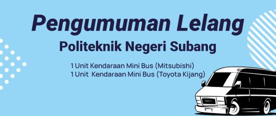 Politeknik Negeri Subang, berdasarkan surat Kepala Kantor Pelayanan kekayaan Negara dan Lelang Purwakarta Nomor: S-62/MK.6/KNL.0804/2023 tanggal 24 Oktober 2023 tentang Persetujuan Penjualan Barang Milik Negara selain Tanah dan/atau Bangunan pada Kementerian Pendidikan dan Kebudayaan RI c.q. Politeknik Negeri Subang, akan melaksanakan Pelelangan Internet (Closed Bidding) atas 2 (dua) unit kendaraan roda empat.